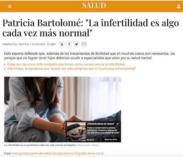 Artículo en el que Patricia habla sobre la infertilidad, cada vez más extendida en la sociedad actual, y la conveniencia de buscar ayuda a todos los niveles.